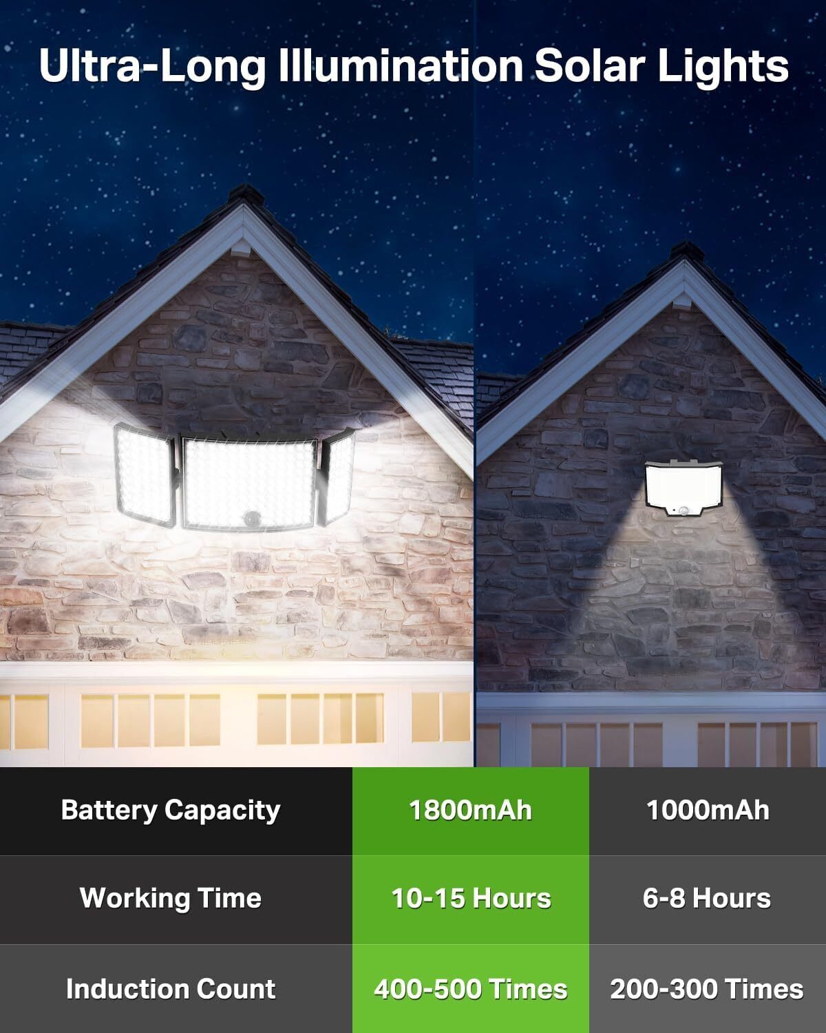 - Flexible Installation & Wide Coverage: With a split design and a 5-meter cable, the solar panel can be installed in optimal sunlight areas, offering flexibility in placement. Enjoy wide-reaching light coverage with a 270° illumination angle, perfect for gardens, driveways, and entryways.