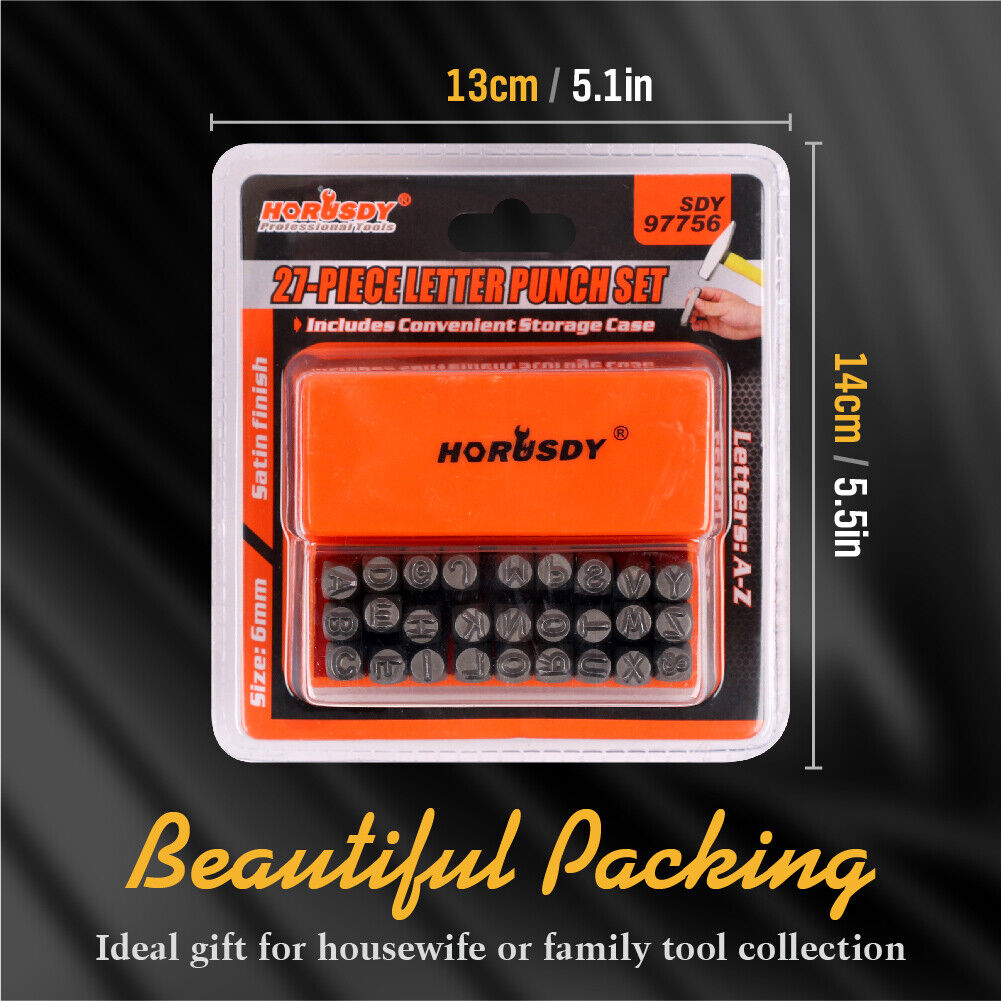 27Pc 6mm Capital Letter Stamp Punches Set Metal Plastic Wood Leather With Case